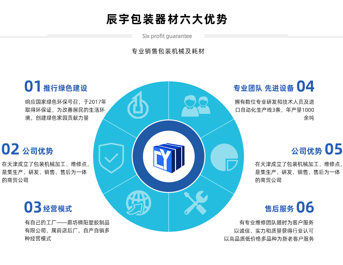 天津辰宇包裝器材有限公司原天津市辰宇商貿(mào)有限公司,位于天津市南開區(qū)密云一支路新南馬路五金城二區(qū)33棟106號,本公司主要經(jīng)營:打包帶,打包機系列,封箱機系列,纏繞機系列,拉伸膜,膠帶,尼龍繩,其他包裝耗材等產(chǎn)品 公司產(chǎn)品質(zhì)優(yōu)價廉,暢銷全國各大城市。同等質(zhì)量比價格,同等價格比質(zhì)量,我們確保質(zhì)量,價錢合理,交貨迅速及時。公司始終秉承“精益求精,鑄造品質(zhì)的典范”的經(jīng)營理念,真誠為廣大客戶提供真誠的服務! 天津市辰宇包裝器材有限公司,感謝廣大新老客戶的鼎力支持,竭誠歡迎社會各界朋友前來洽談業(yè)務,愿真誠合作攜手共創(chuàng)美好未來!